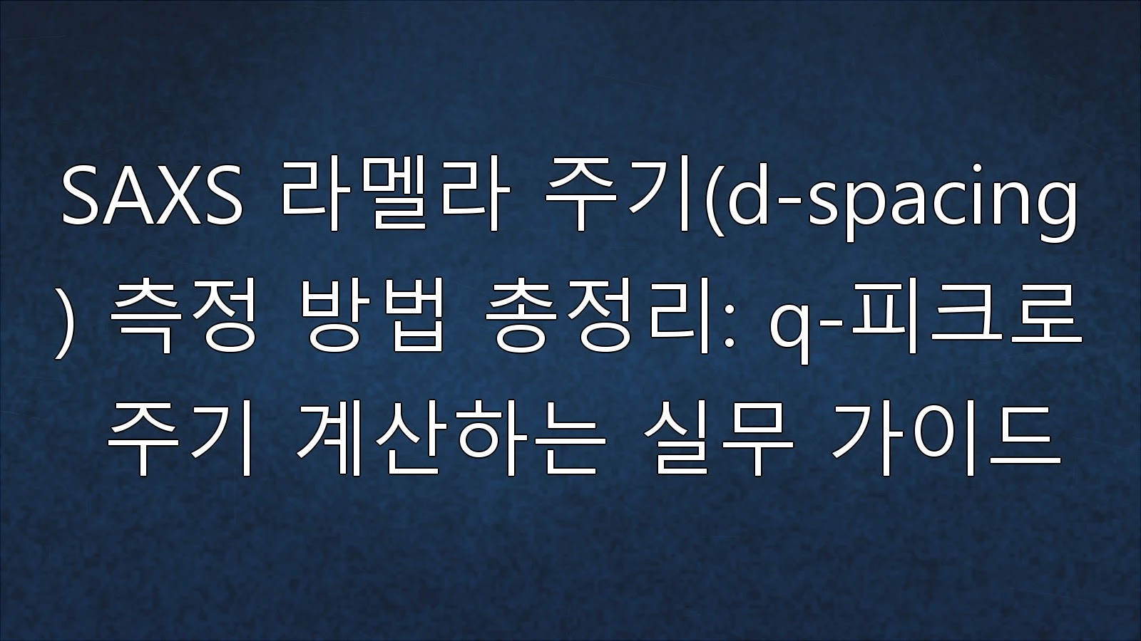 실무 권장 피크 적합 개념 예시이다. I(q) = Baseline(q) + Peak(q) Baseline(q) = a + b·q^(-m) (저각 업턴이 있을 때 자주 쓰다) Peak(q) = A·exp( - (q - q*)^2 / (2σ^2) ) (가우시안 예시이다) 최종 라멜라 주기 d = 2π / q* 3) 단위 실수 방지 체크리스트